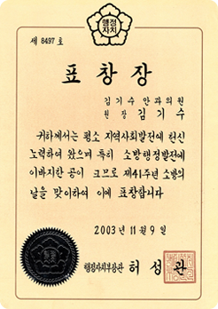행정자치부 장관상 수상