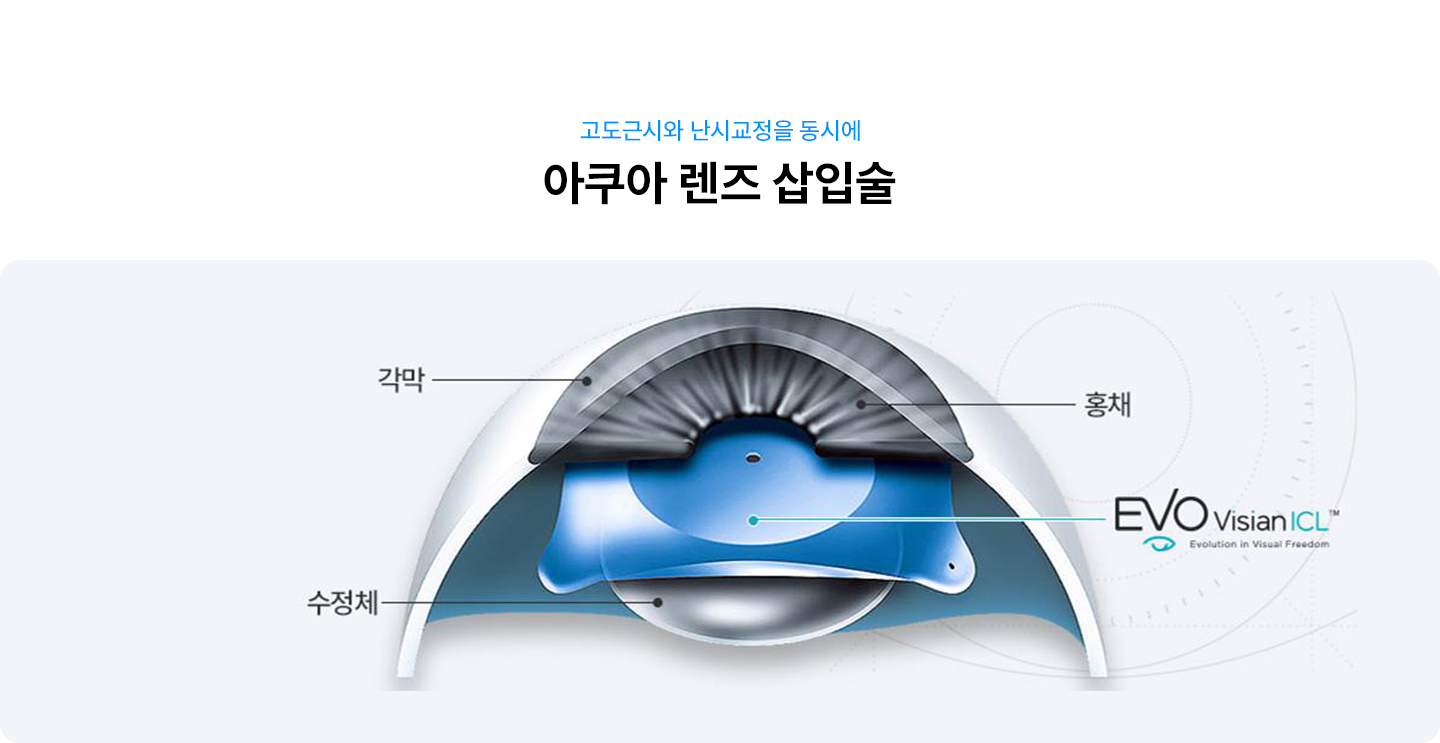 근시 교정용 일반 ICL과 근시와 난시를 동시에 교정하는 Toric ICL(TICL)이 있습니다.
